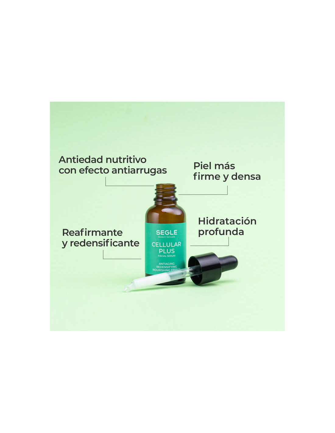 Sérum antiedad nutritivo con efecto antiarrugas, reafirmante y redensificante para una piel más nutrida, suave y elástica.